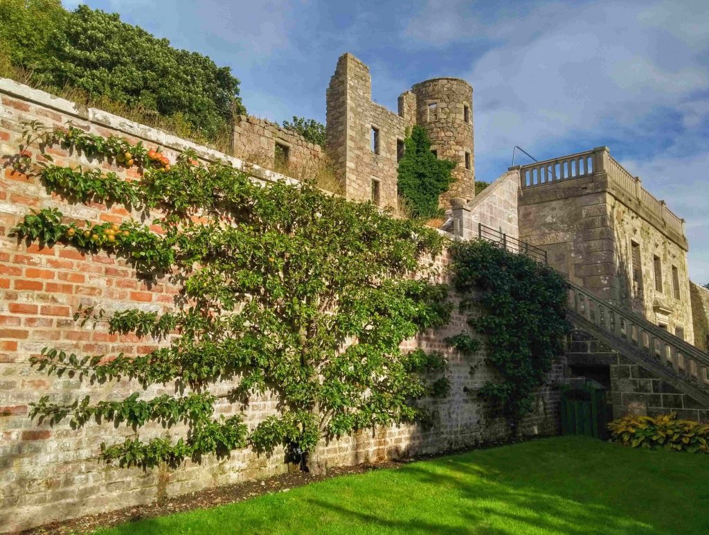 Gifted to the community of Ellon in 2015, Ellon Castle Gardens is run by a charitable trust and maintained by a team of dedicated volunteers. Caring for the 60 heritage espalier apple trees is a year-round labour of love starting with winter pruning then mulching, thinning the fruit, summer pruning, and culminating in the harvest in August and September. On the first Sunday in October, an Apple Day event is held in the Gardens where half the crop is sold to apple enthusiasts for making pies, crumbles, and chutneys, or simply for eating as they stroll around the Gardens. The other half of the crop is transformed into award winning cider!